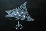 The exploration was an attempt to 'give shape' to an otherwise completely malleable material by using it in conjunction with a slender but rigid armature. The result is a lamp fixture where the silicone canopy / light is given a hyperbolic paraboloid form (and powered) by its acrylic stand.